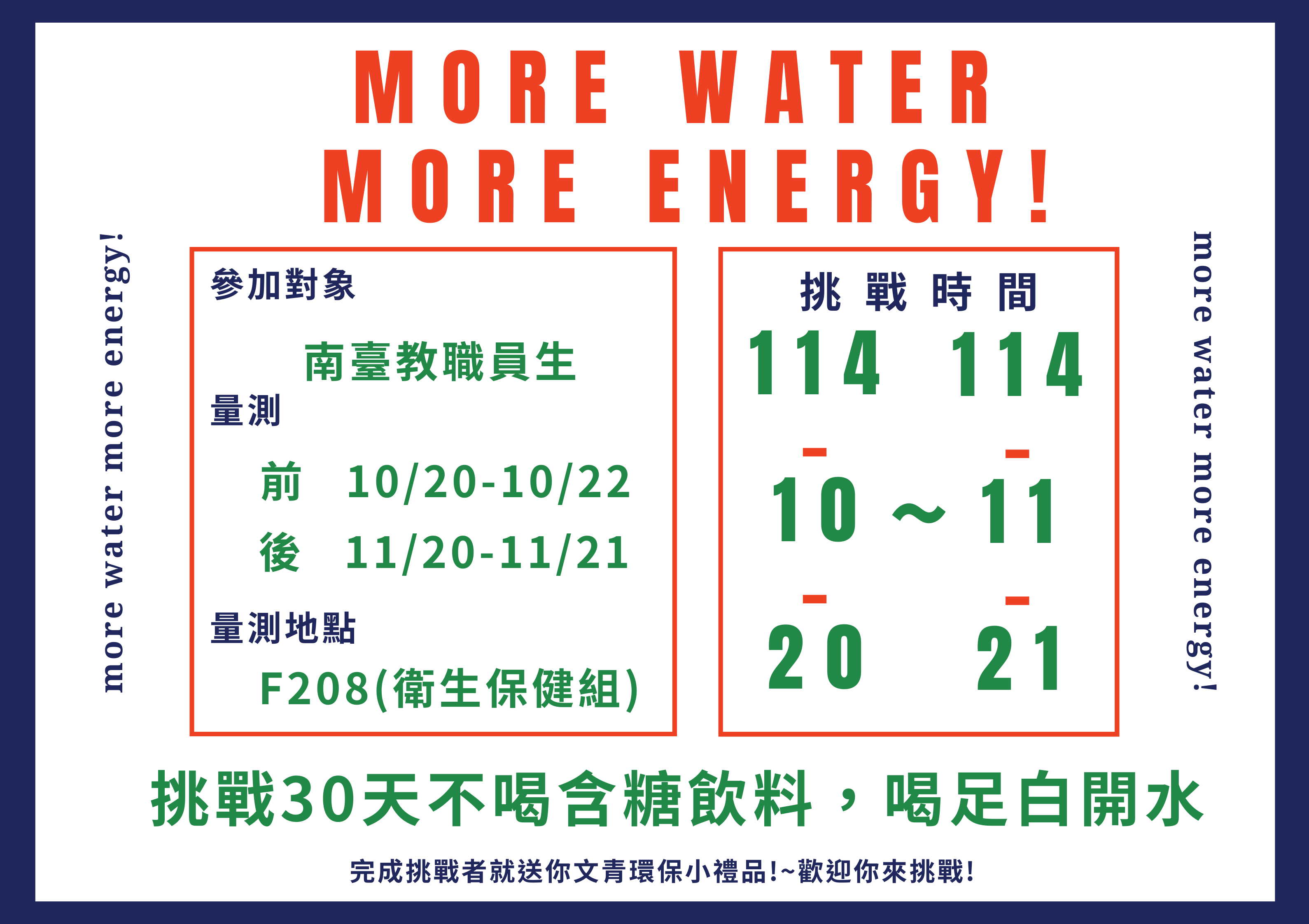 (1) Participants must complete the pre-test at F208 before 12:00 on 10/20-10/22 and confirm the recommended daily water intake to receive the challenge card.