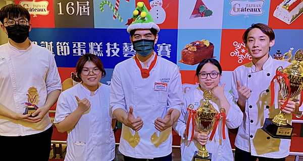 The Department of Hospitality Management, STUST, recently participated in the 2021 Taiwan Cake Association Christmas Cake Skills Competition. Yi-Chen Lin and Yu-Fang Jiang won two championships in the professional group mousse cake and firewood ...