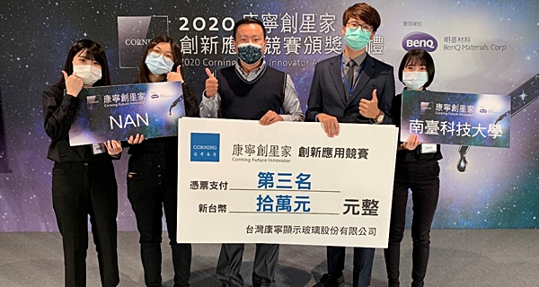 The interdisciplinary team of the Department of Electrical Engineering and the Department of Creative Product Design of STUST won third place in the 2020 Corning Star Creator Innovative Application Competition.