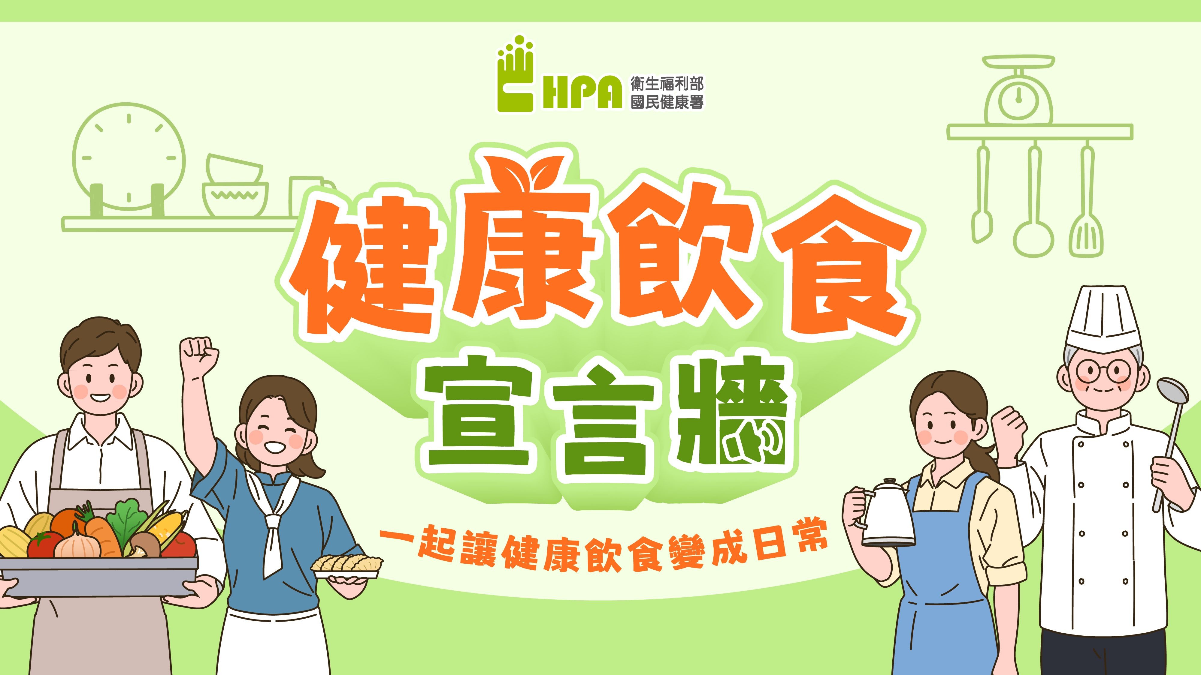 The National Health Administration (NHA) of the Ministry of Health and Welfare invites all agencies, organizations, and groups to participate in the "Healthy Eating Declaration Wall" platform.
