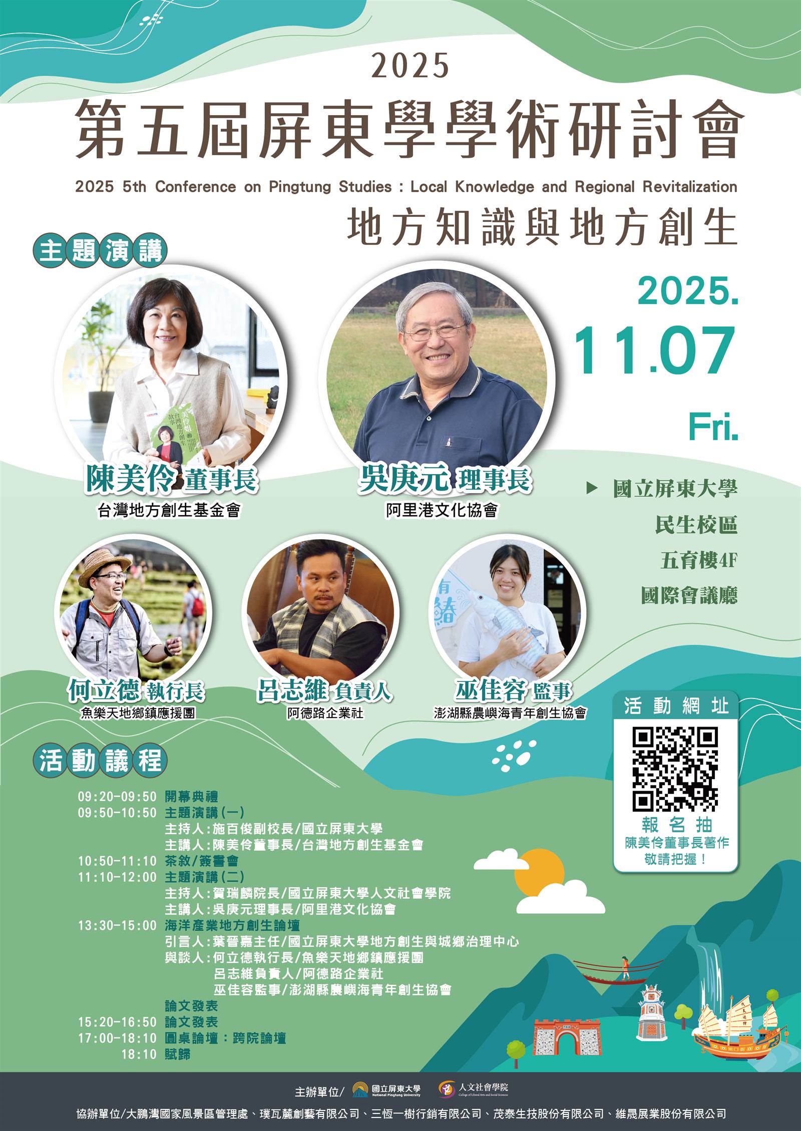 屏東大學辦理「2025年第五屆屏東學學術研討會:地方知識與地方創生」徵稿啟事