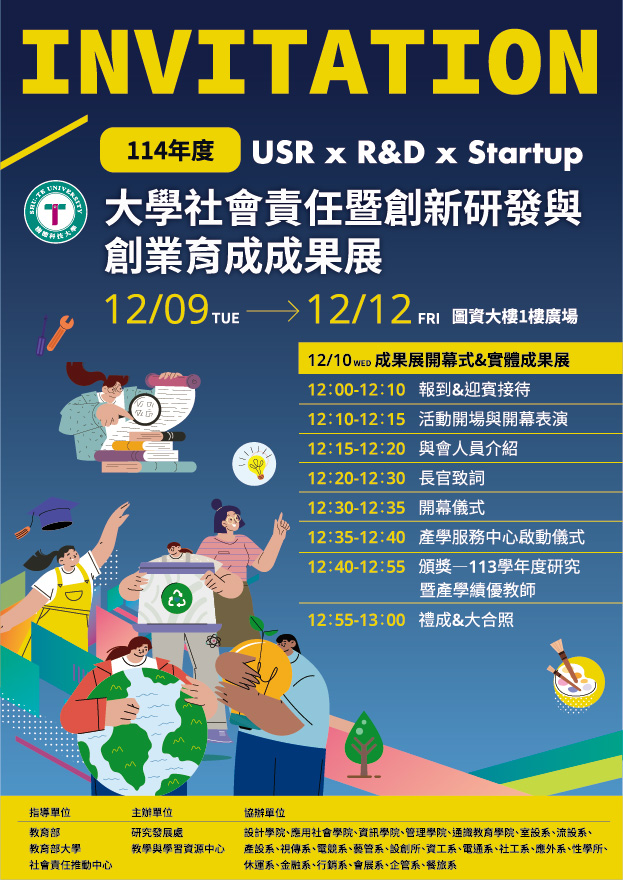 (二)成果動態展:114年12月10日(三),11:00~15:00。