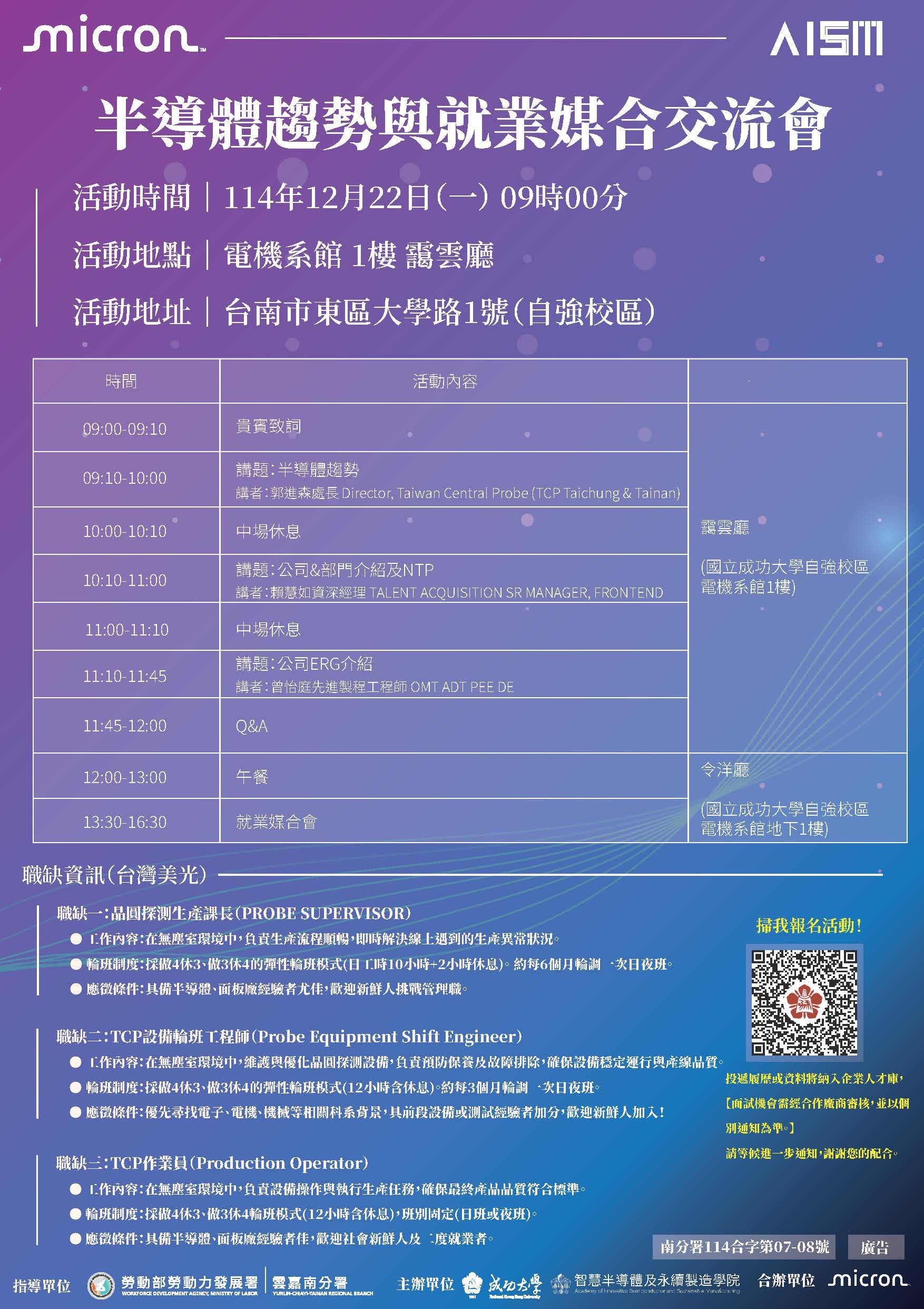 Want to learn about the latest trends in the semiconductor industry and have the opportunity to meet face-to-face with HR and executives from Micron Taiwan?