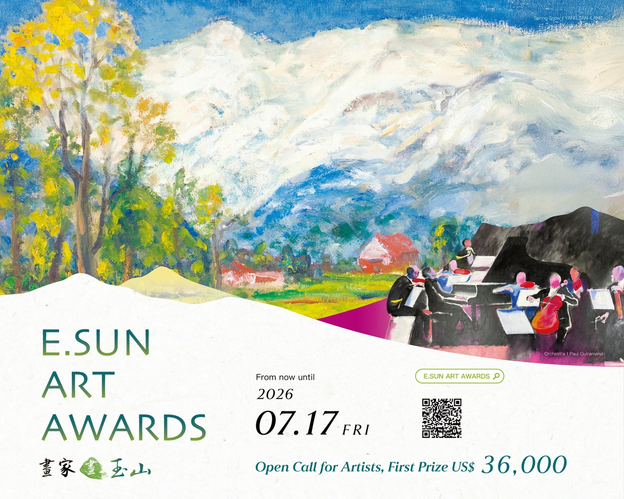 一、本著熱愛家園的情懷,玉山銀行用心推廣藝術與人文,特別籌辦2026「畫家畫玉山」活動,邀請國內外熱愛繪畫的藝術人士及學生踴躍報名,期盼透過藝術家創意與動人的彩筆,彩繪玉山與音樂人文之美,為厚植藝術創作人才盡一份心力。