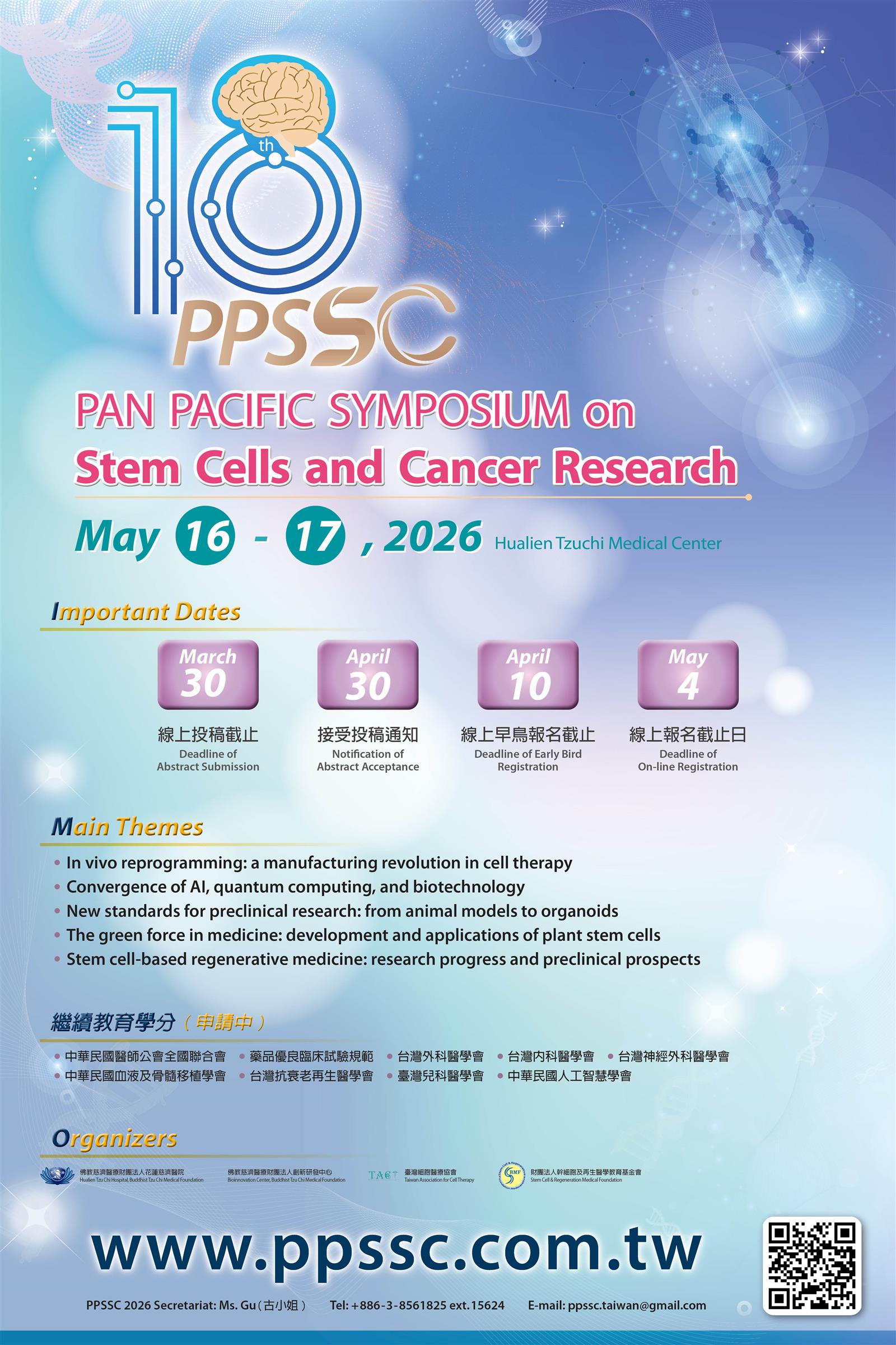 I. To promote the advancement of stem cell science and cancer medicine in Taiwan and facilitate international exchange, the 18th Pan Pacific Symposium on Stem Cells and Cancer Research will be held. This year's conference invites 16 renowned scholars from abroad, as well as 7 experts and scholars from domestic institutions including Academia Sinica, National Tsing Hua University, National Yang-Ming University, and National Taiwan University. The conference themes are as follows: