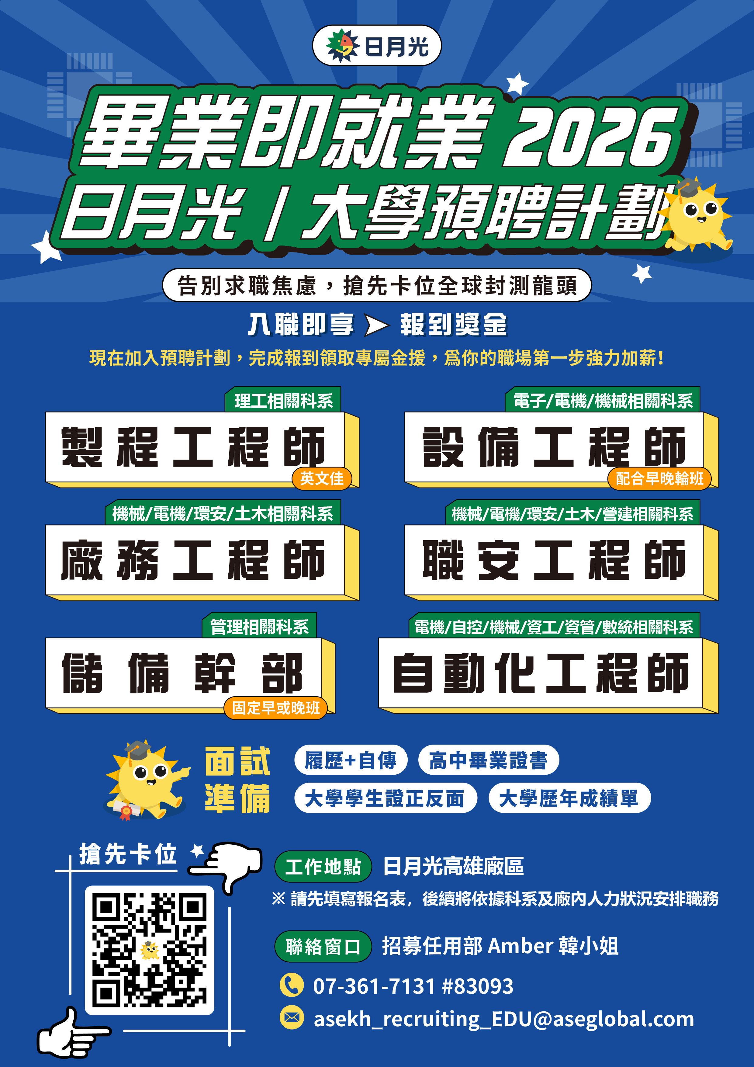 電子郵件: asekh_recruiting_EDU@aseglobal.com/Amber_Han@aseglobal.com
