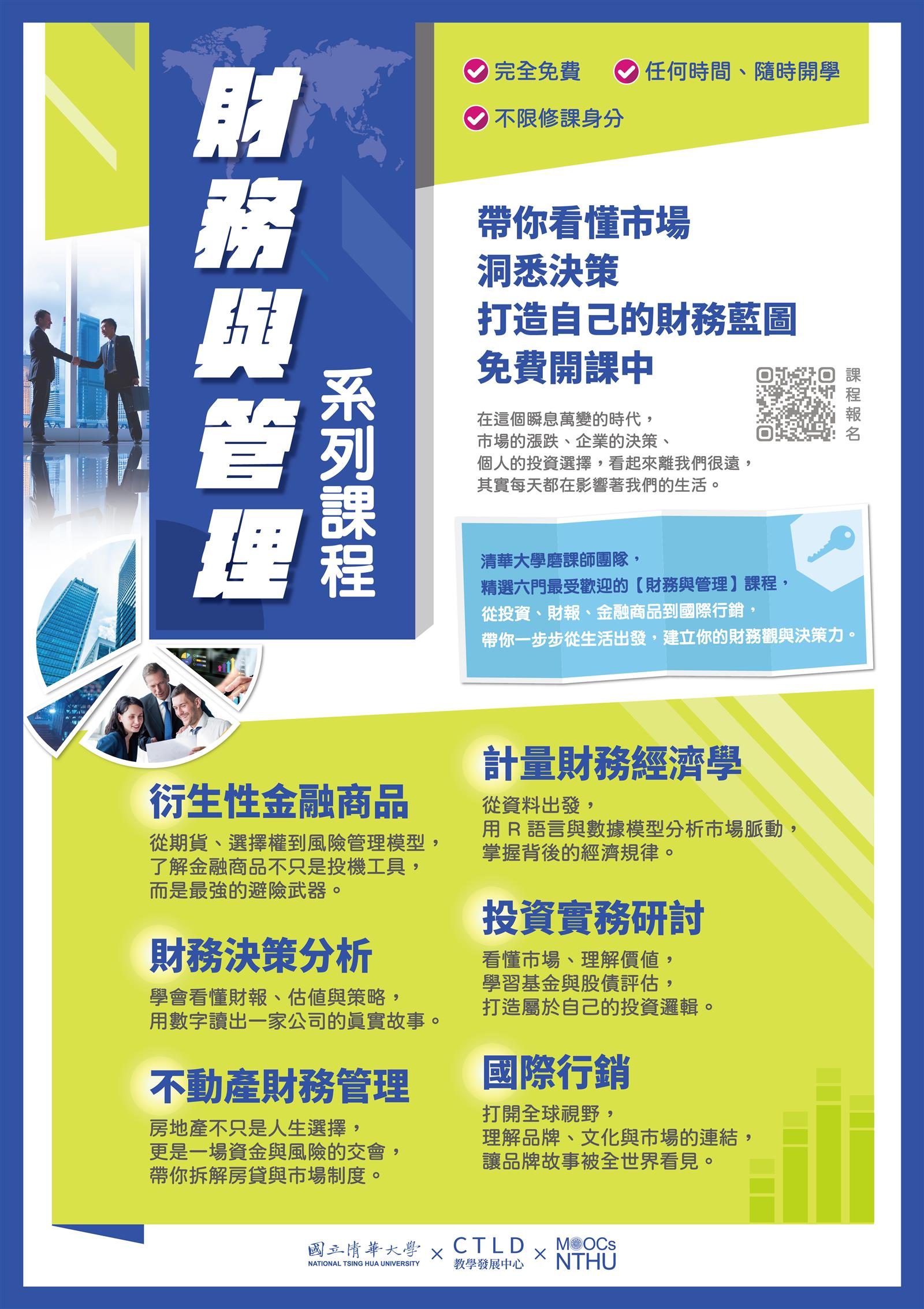 I. This course is a digital course offered by the National Tsing Hua University Course Maker Platform, themed "Finance and Management," and includes the following six courses:
