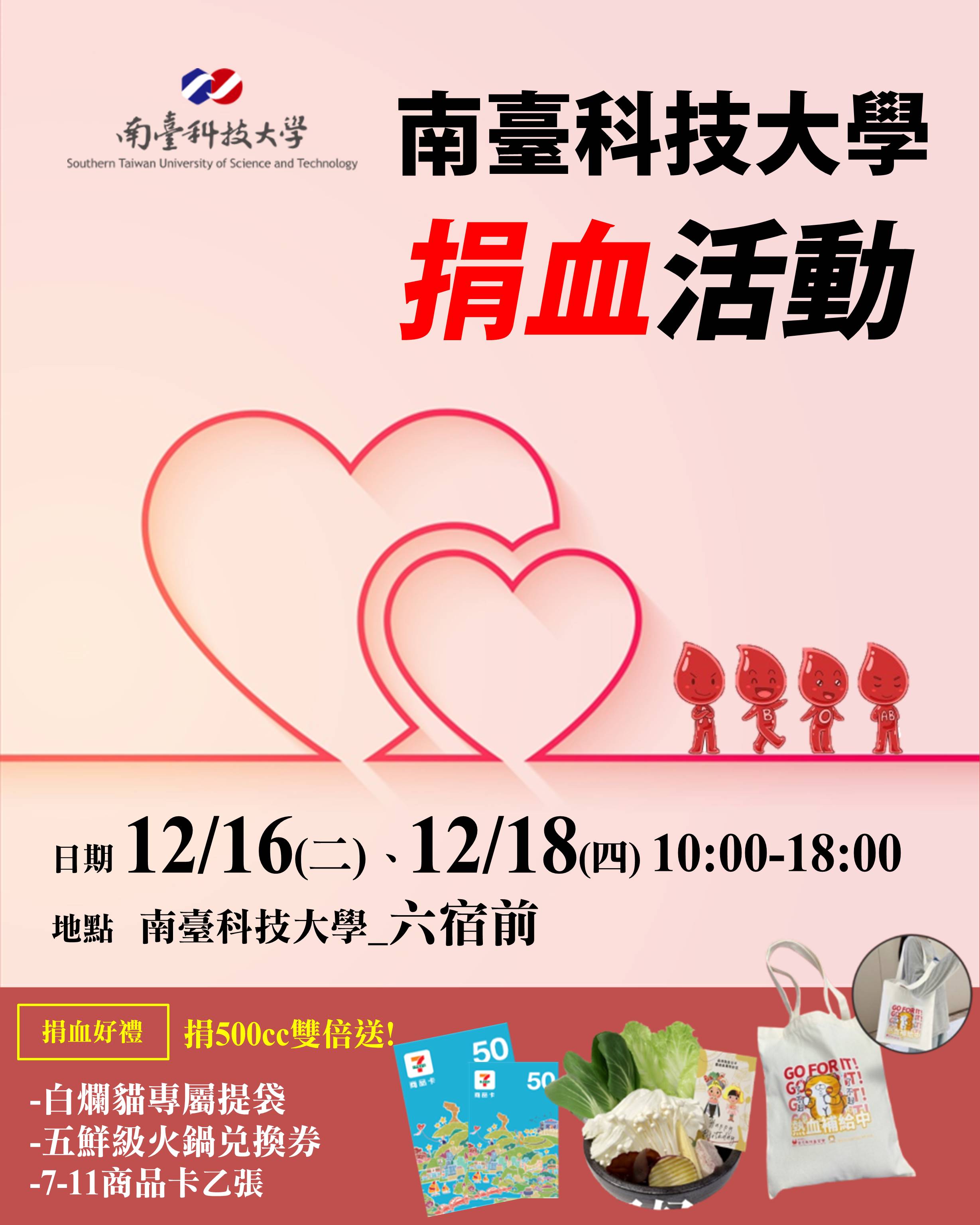 📢 Southern Taiwan University of Science and Technology — December 2025 “Roll Up Your Sleeves and Donate Blood” Campaign
