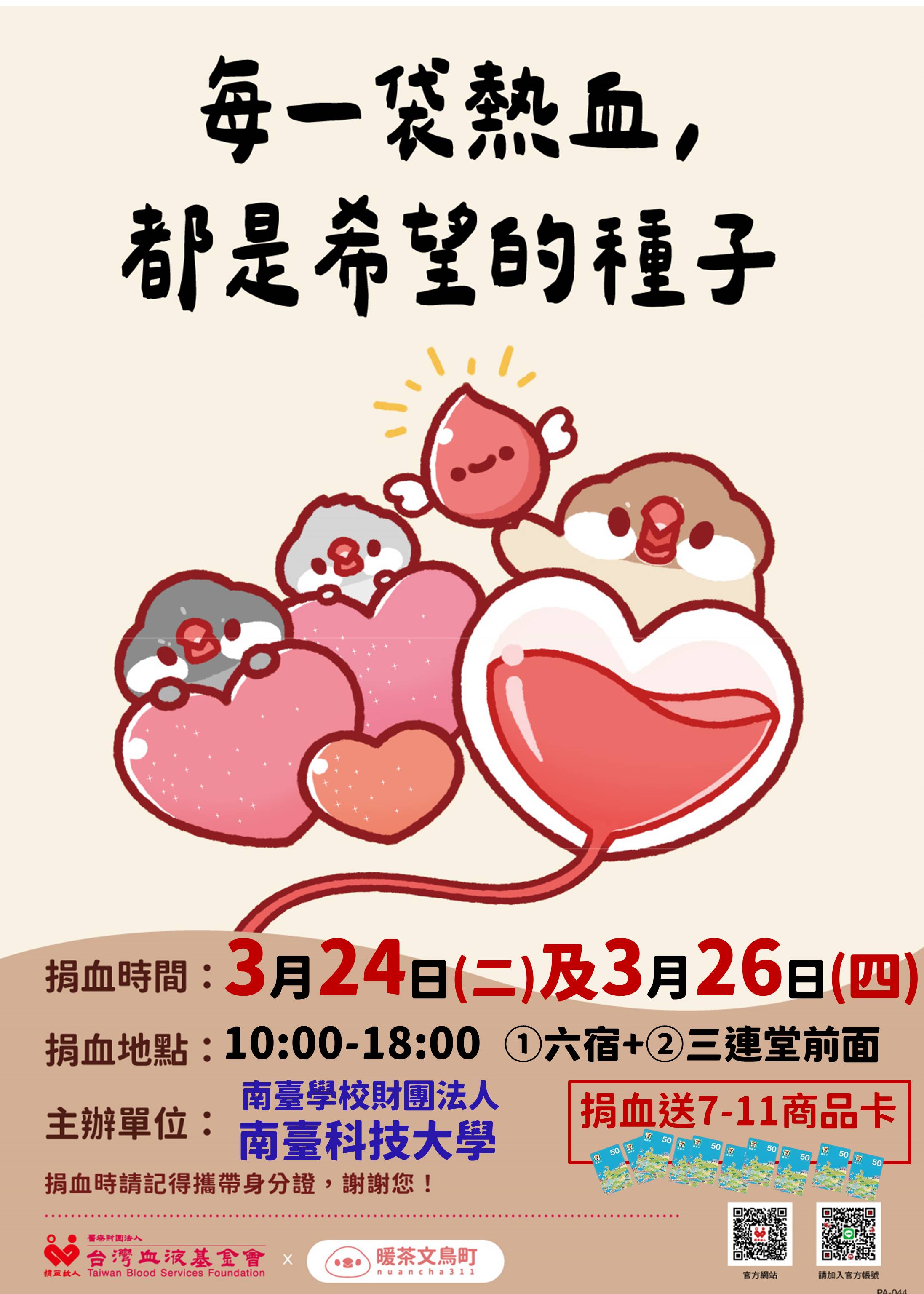 ▲ Anyone donating blood at the designated campus site will receive a 7‑Eleven gift card.