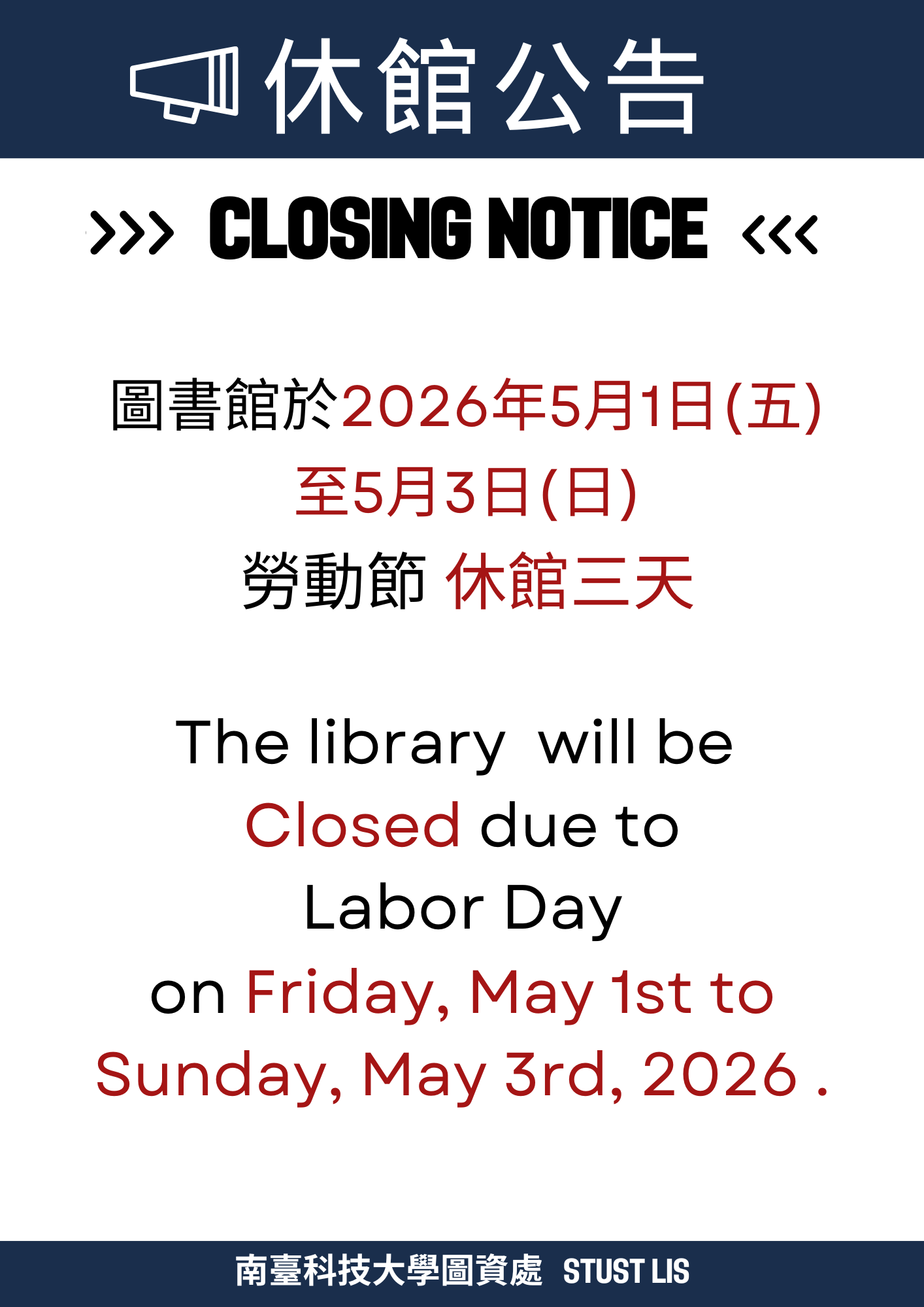 The library will be Closed due to Labor Day on Friday, May 1st to Sunday, May 3rd, 2026 .