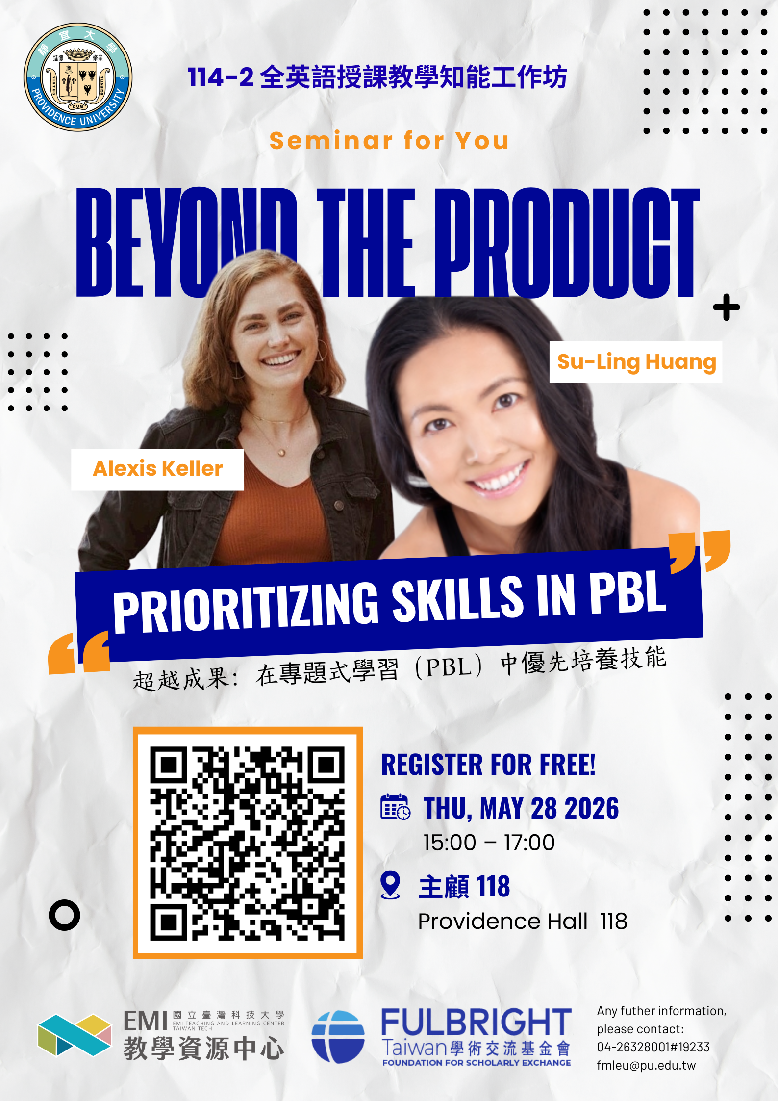 III. Registration Period: April 27, 2026 to May 17, 2026. Online registration is required until all places are filled. Registration website: https://reurl.cc/4lXQrD